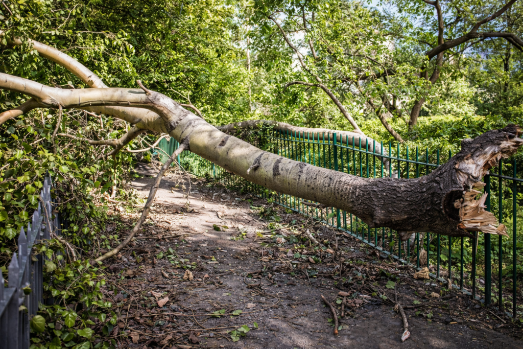 - Fallen or storm-damaged trees